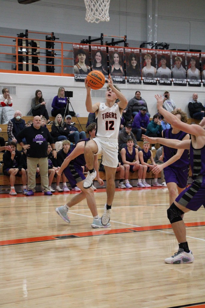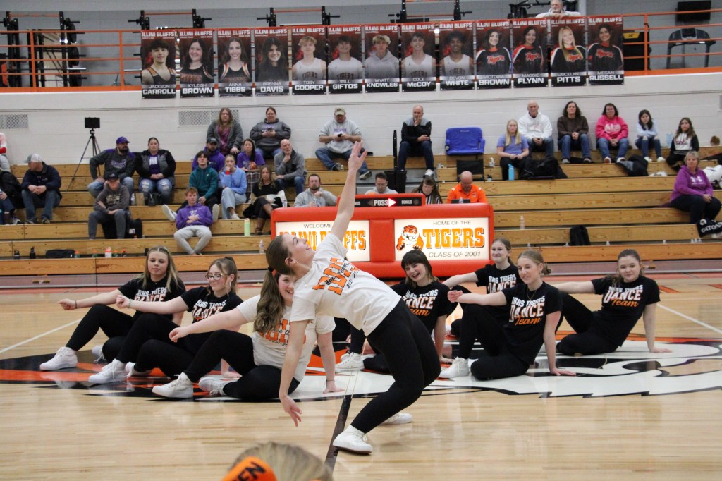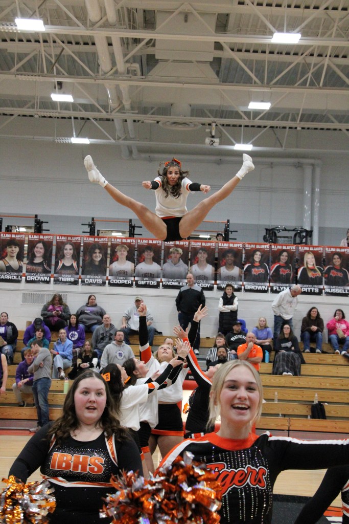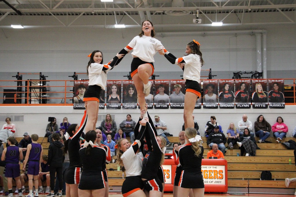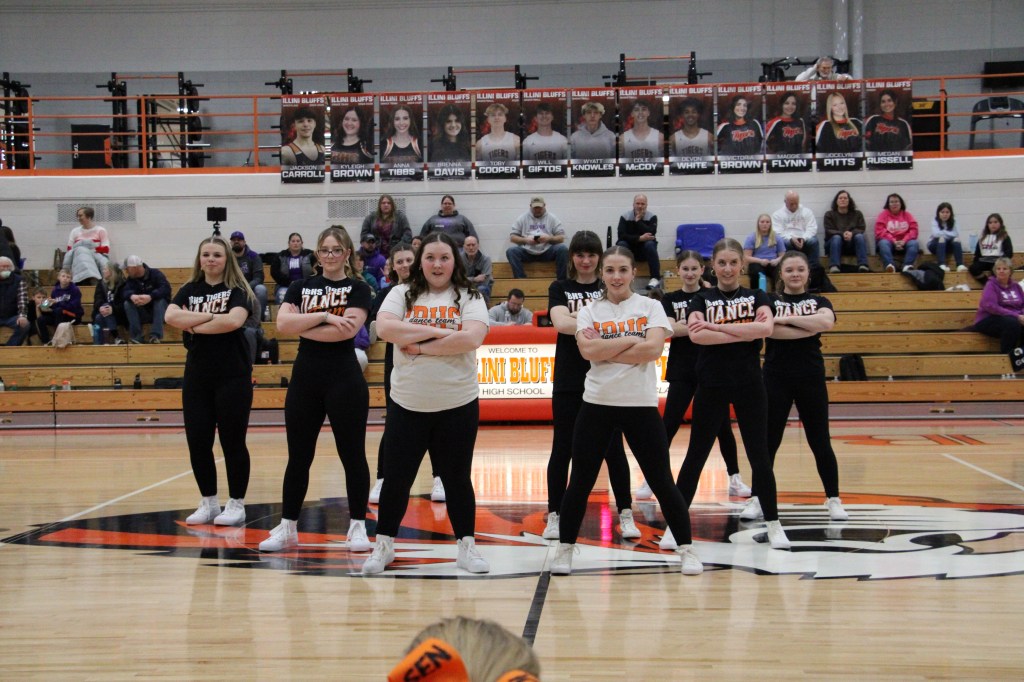 Last night, Feb. 14, 2025 the Illini Bluffs boys basketball team played against Delevan. JV won their game 43-40 while varsity won 55-40. It was senior night for the basketball players, cheerleaders, and dance team. The dance team has two seniors, Kyleigh and Anna. While there are four senior cheerleaders: Megan, Tori, Maggie, and Joce. The basketball team has five seniors: Toby, Devon, Will, Cole and Wyatt. Good luck to all of these seniors in all that they do after high school.